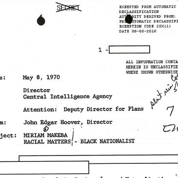One of more than 500 pages of FBI files on Miriam Makeba obtained by producers through Freedom of Information Act requests.